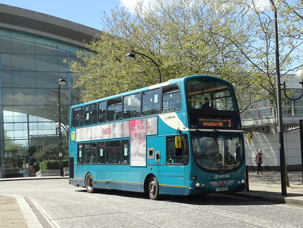 Volvo/Wrights 4217 is seen with route 3 to Amazon.