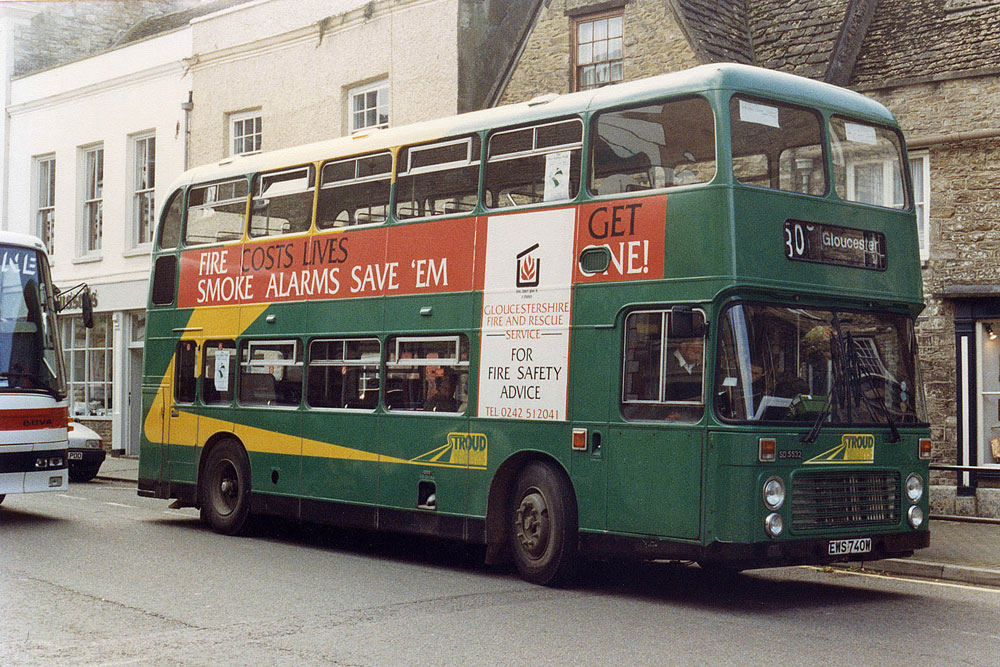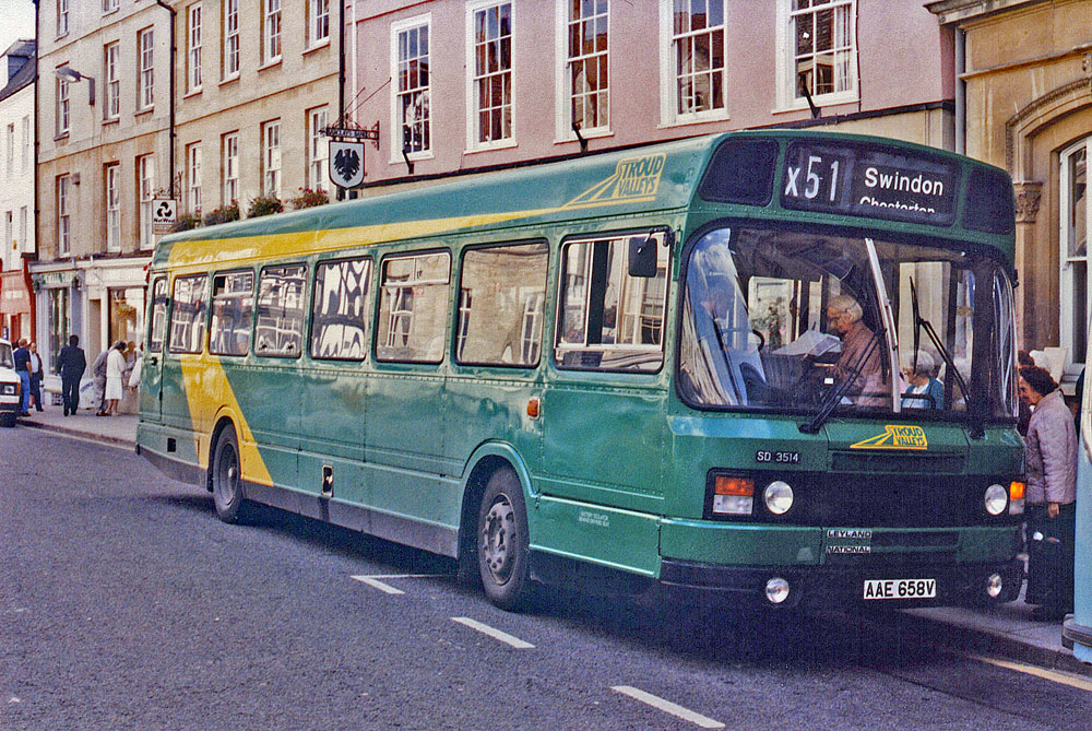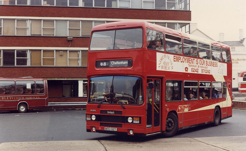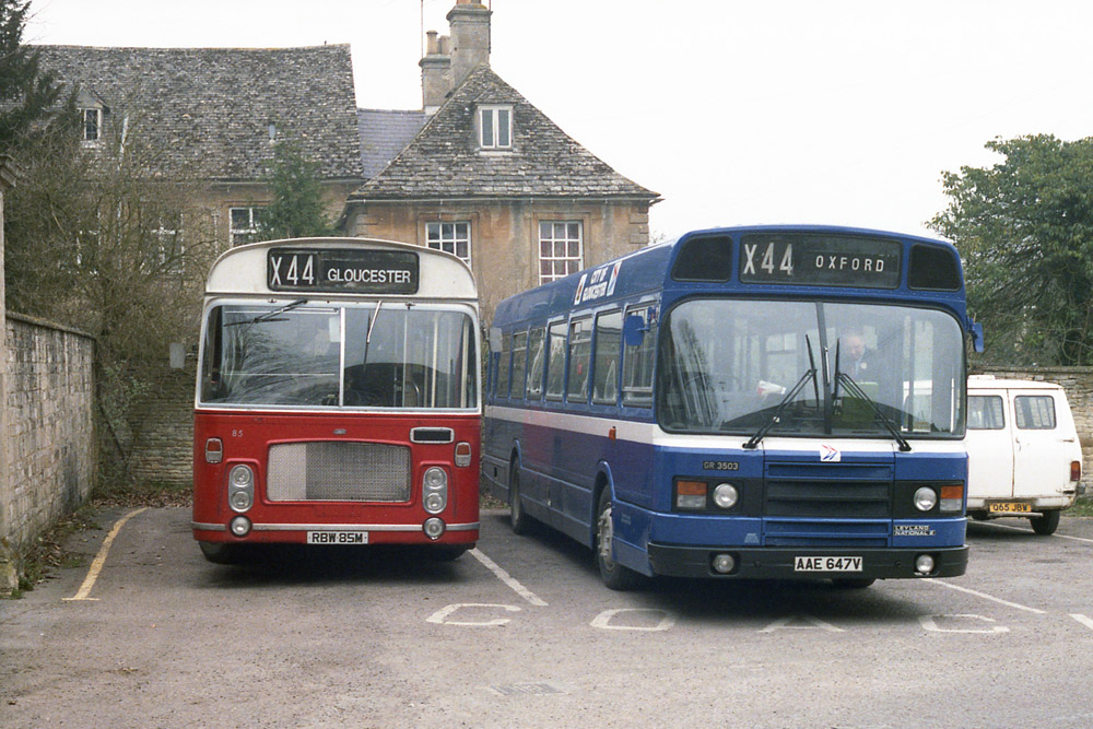 COMS 85 and Cheltenham & Gloucester 3503 ready for service on the X44 in Burford on March 16th 1984 by Neil Gow.Tony Bungay