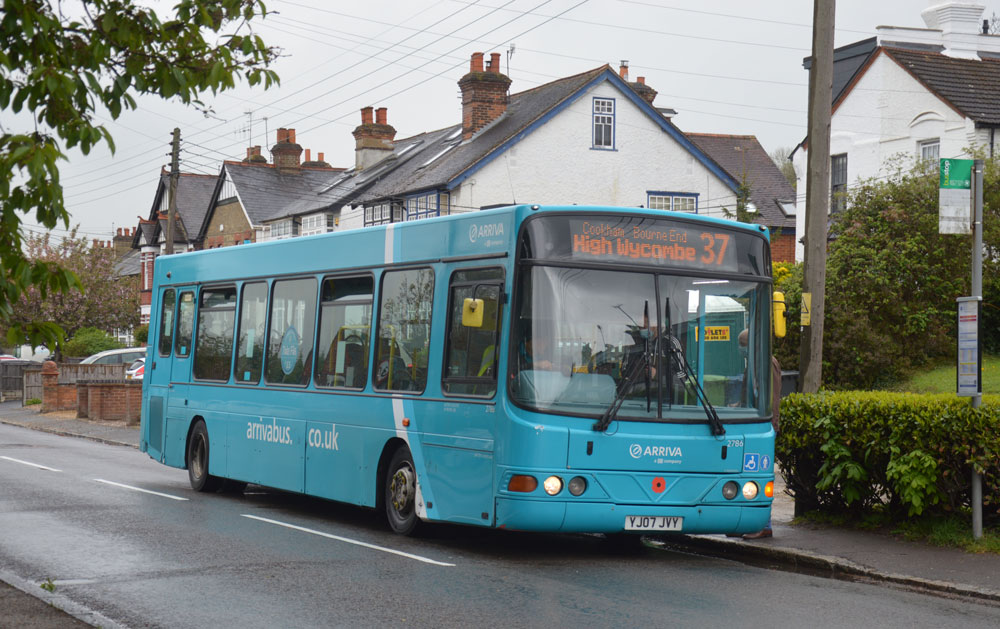 Arriva 2786, a DAF SB120 / Wright Cadet, pick up passengers in Wycombe Lane, on