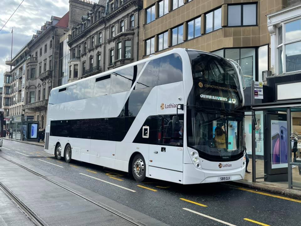 Volvo B8L/Enviro 400LXB 1126 seen in white livery in Edinburgh on May 16th.