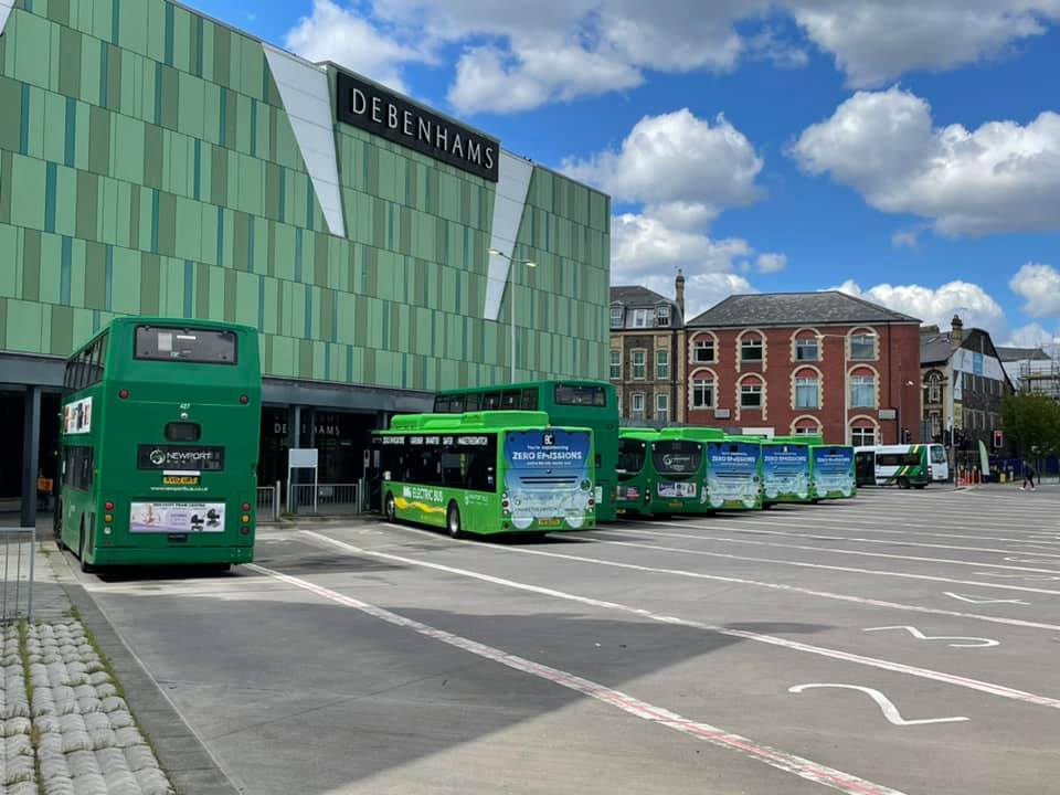 Newport Mon bus station seen on May 6th dominated by Newport Buses, notable are