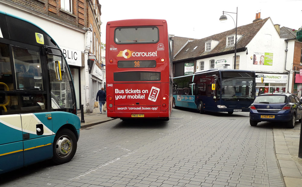 working S500 about to enter Aylesbury Bus Station on May 20th.