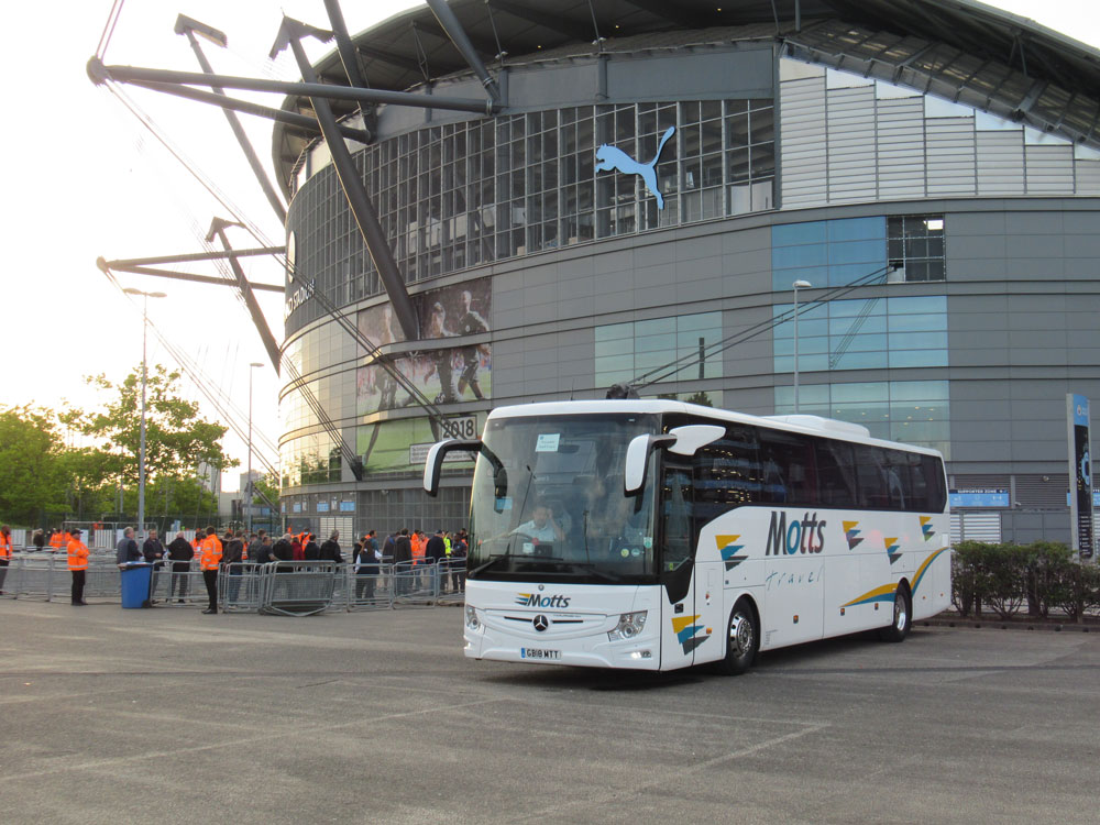 The first coach to arrive was Motts at the City ground, GB18MTT carrying club