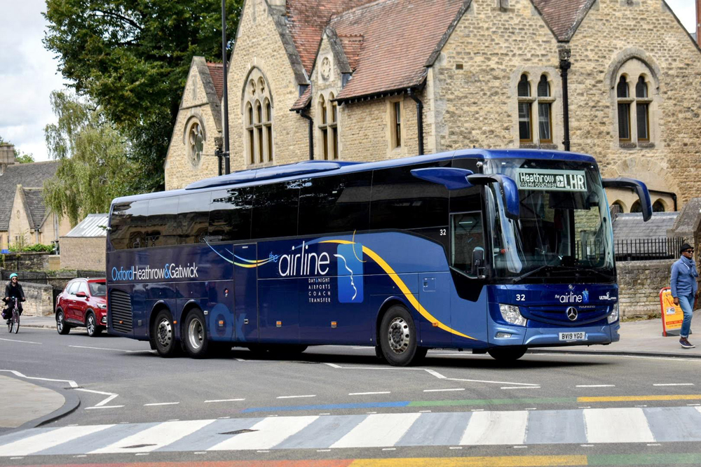 A nice picture of coach 32 heading for Heathrow at the top of New Road on
