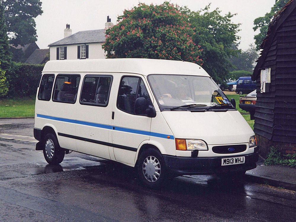 Ford Transit M913 WHJ of Potters Bar Radio Cabs performs the honours in Ridge on