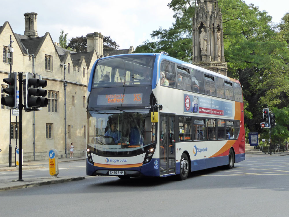 MMC 10499 originally with Stagecoach Devon seen with an X5 in St Giles on