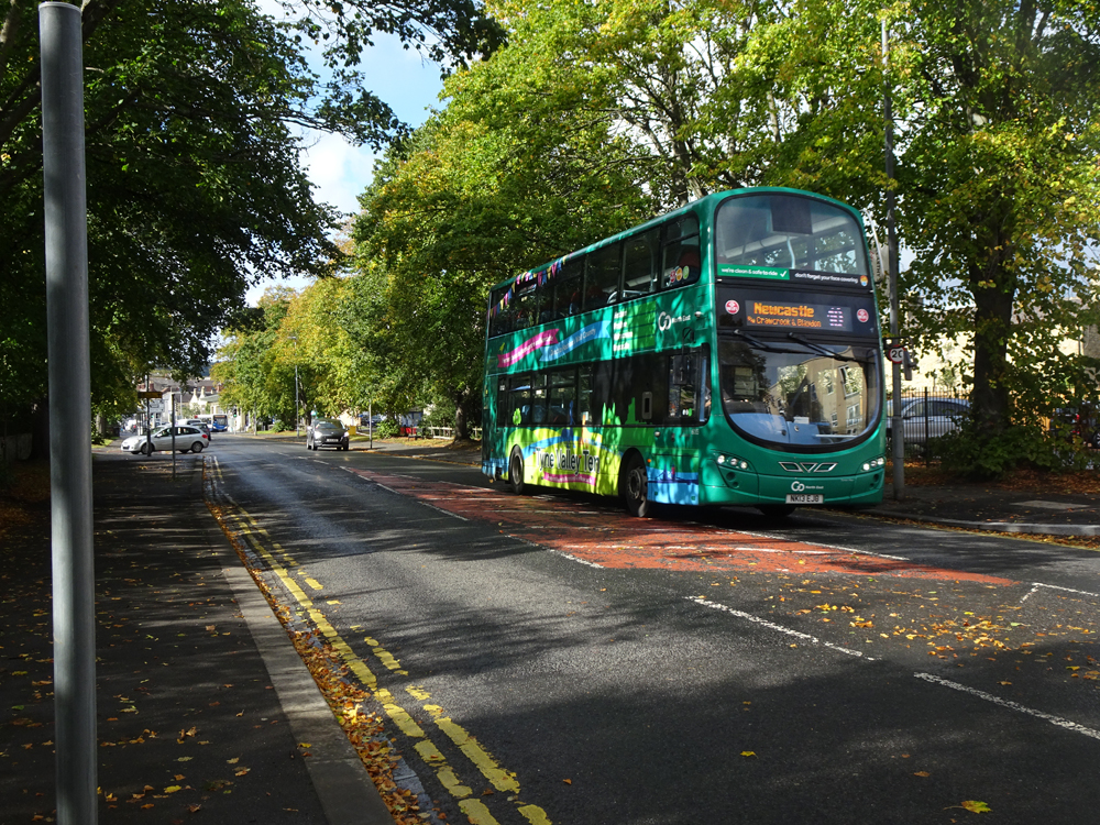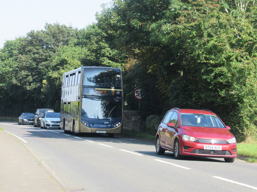 Go Ahead's VolvoB9 Wright Gemini NK13 EJO fleet no 6083 departing Hexham for