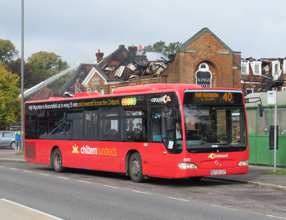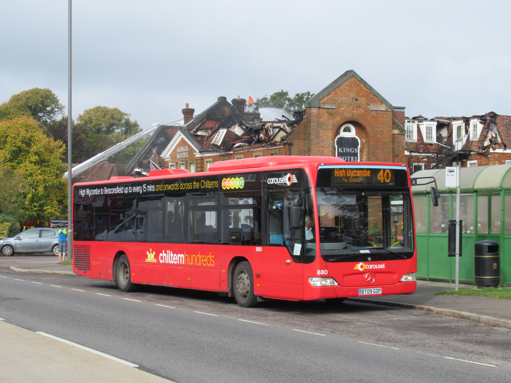 Red Citaro 880 with a mid morning 40 with The Kings behind showing the fire