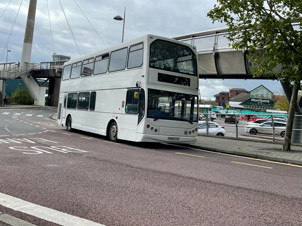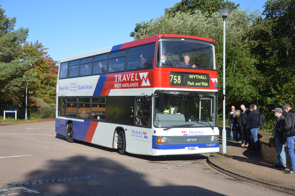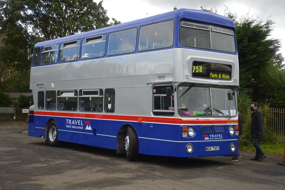 Seen on the car park shuttle is West Midlands PTE 7000, Daimler Fleetline /