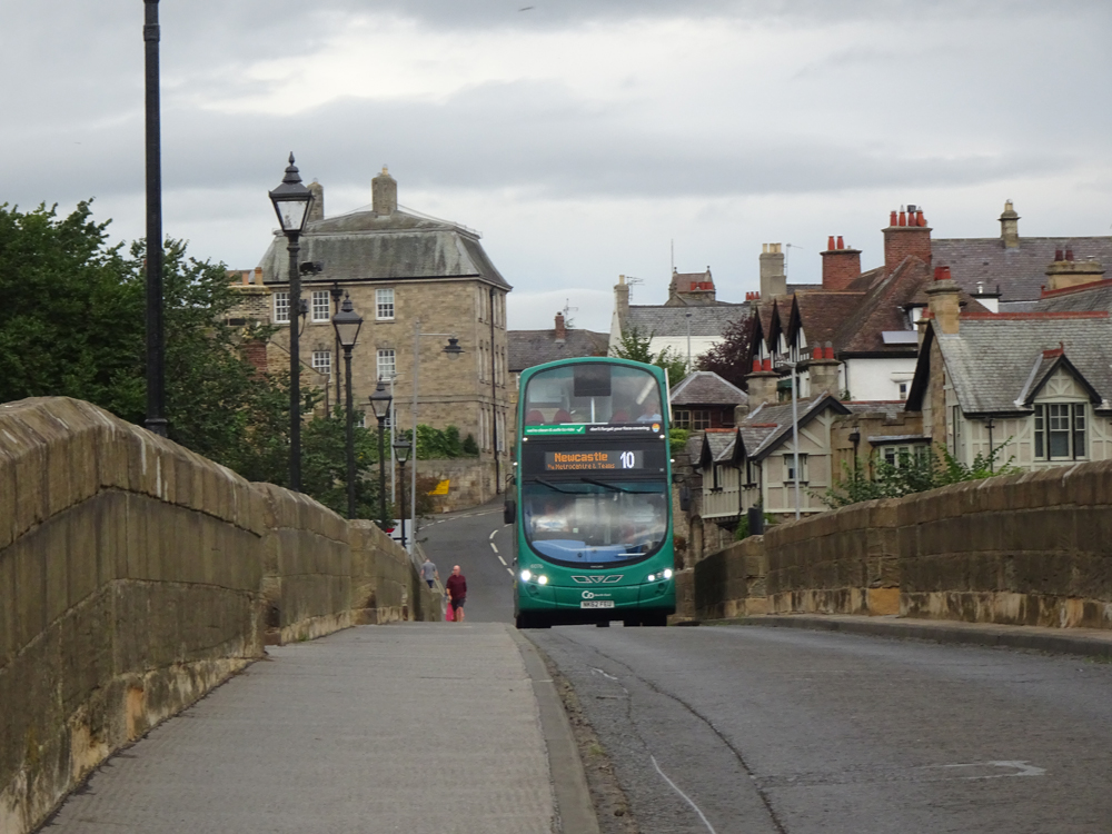 Go Ahead's Volvo B9 Gemini NK62 FEU fleet no 6076 crosses the 1674 built Tyne