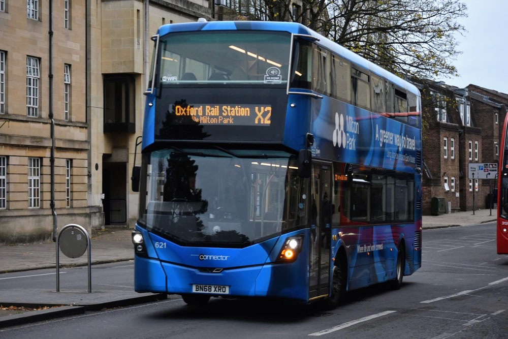 Resplendent in Milton Park livery 621 is seen in St Aldates with a n X2 on