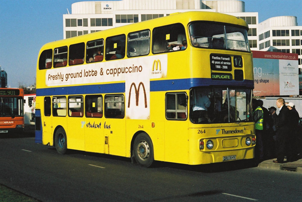 Thamesdown had a dedicated school bus fleet painted in this yellow and value livery, comprised mainly of elderly Fleetlines, both indigenous and second-hand from Bournemouth.