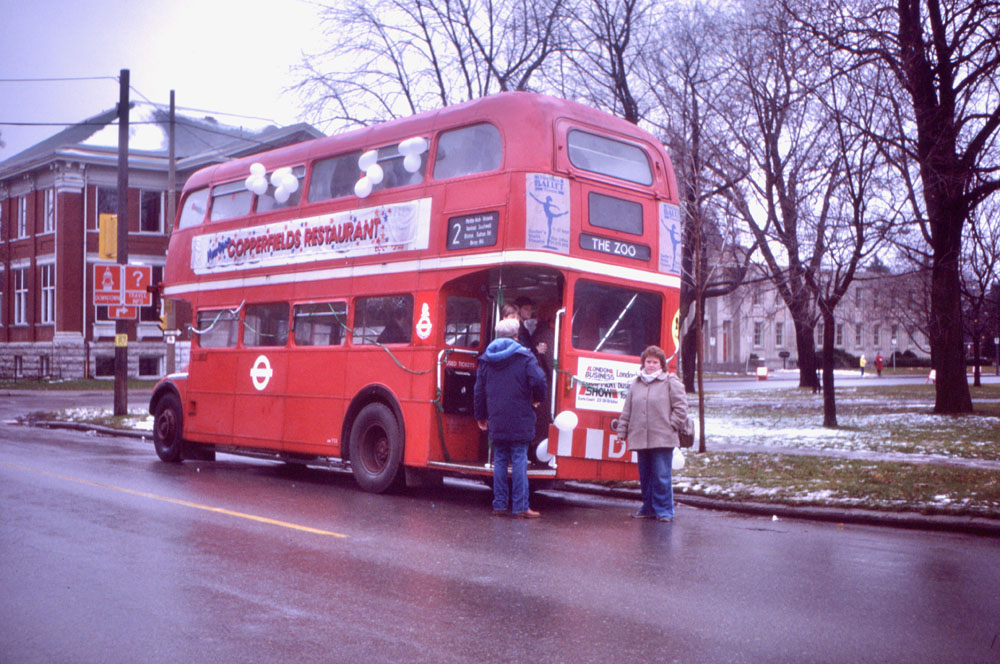 As you know I was living in England in 1985. In November 1985, Sue and I had a trip to Canada so that she could visit her parents and other family members. We stayed with her parents in Peterborough. I knew that RM 1909 had recently been purchased by Copperfield Roadhouses in Belleville and took a drive there to find this bus.