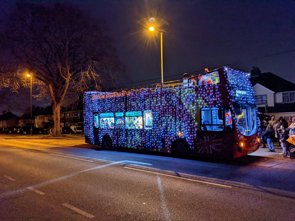 Jack writes "I had travelled on the Christmas Lights Bus tonight, it was wonderful to see so many people out to see the bus, with some people saying it had made their year! I think I have managed to include every location the bus had visited !"