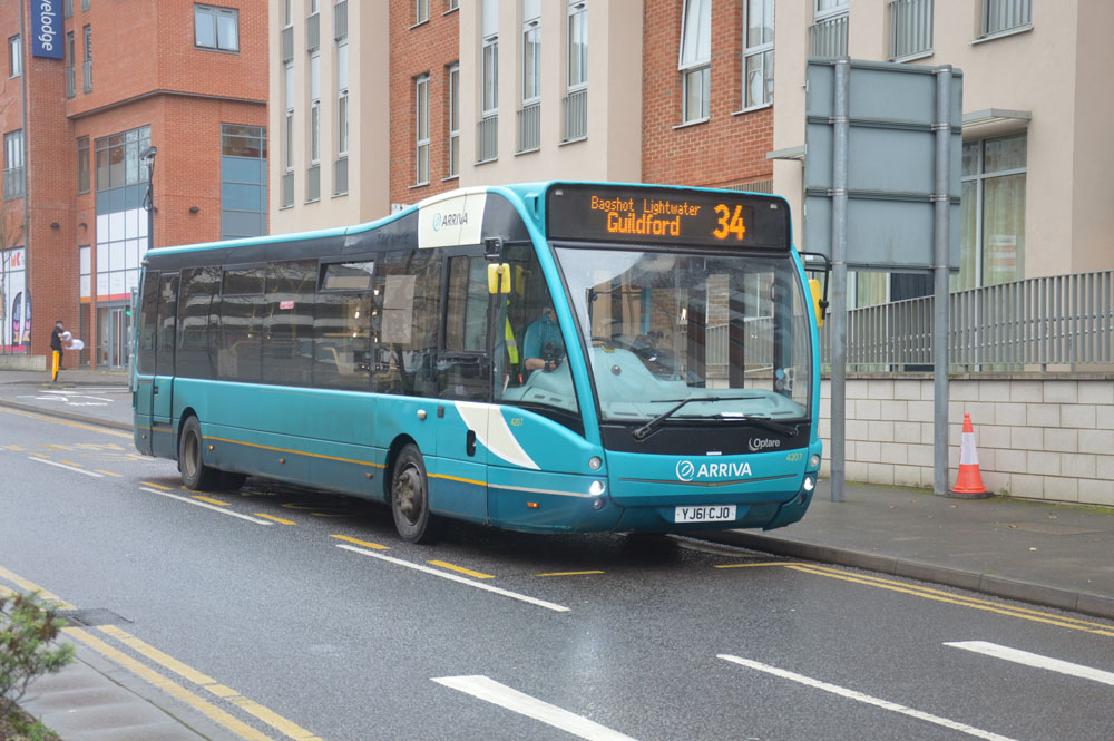 Seen laying over after arrival at Camberley, Optare Versa 4207, YJ61CJO is