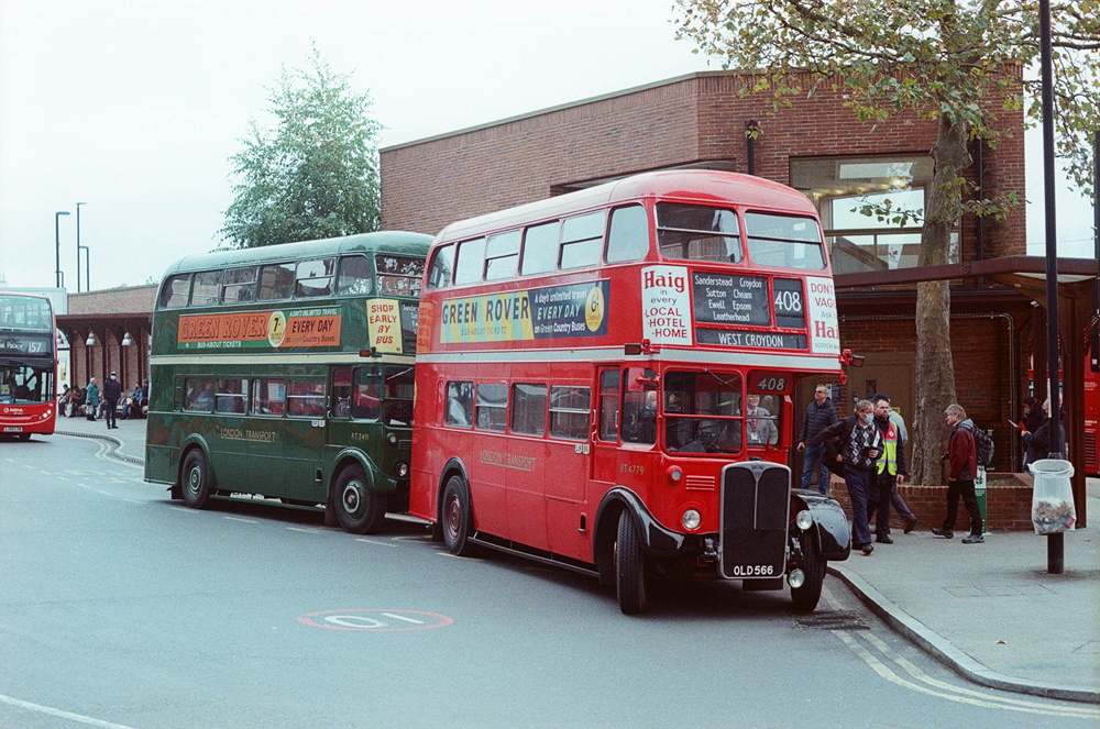 London Transport GS67 awaits departure of the morning journey in Cheam Broadway