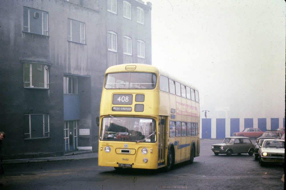 Guildford on the 408 in December 1975. The blue and white hoardings behind the