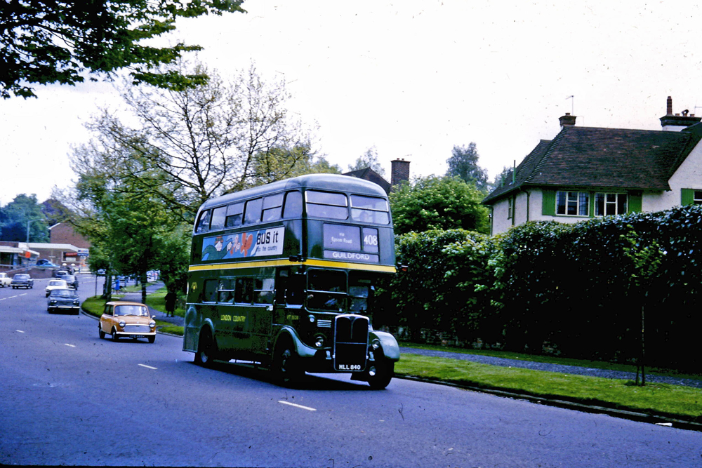 them: London Country RT3530 in Merrow in June 1972, shortly before the route was