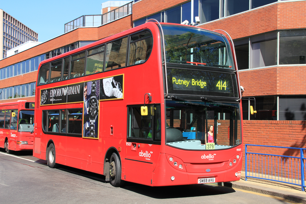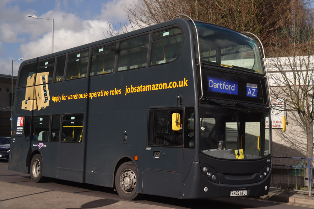 9507 is seen arriving in Dartford on 12 March, complete with blue blinds as seen