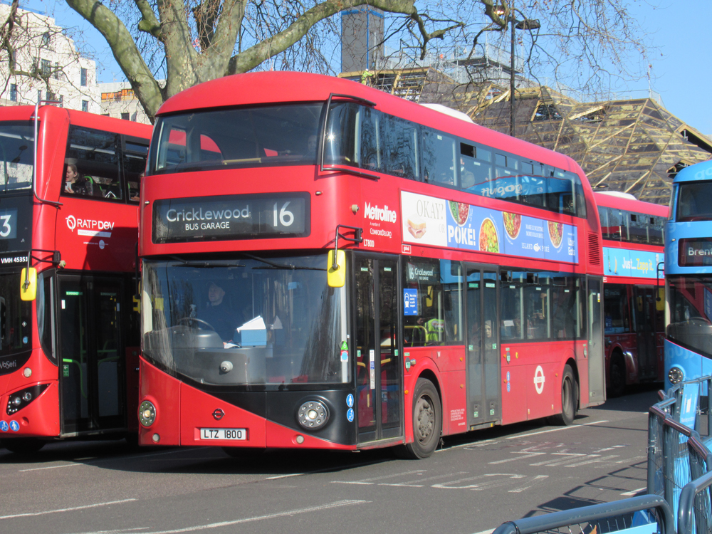 Just two of the hydrogen double deckers have made it back into service after the fleet (along with others in Aberdeen and Birmingham) were grounded last month following the discovery of problems with a bracket. Route 7 between Oxford Circus and East Acton is consequently now in the hands of older hybrid vehicles which have now gained blinds to aid intending passengers.