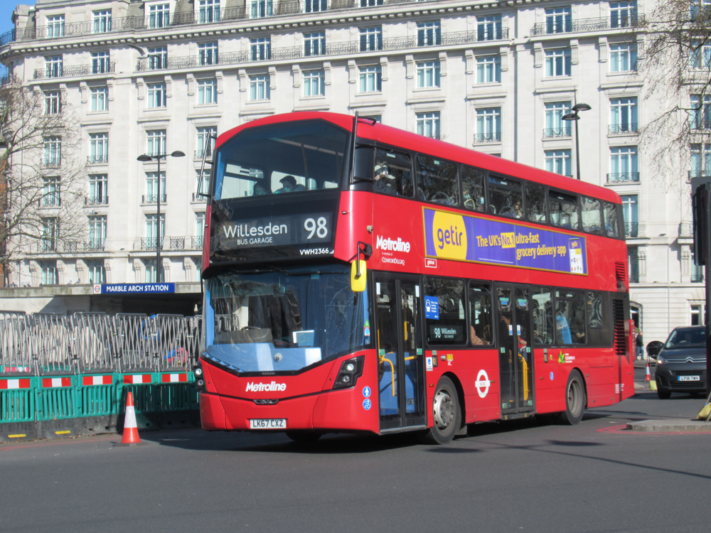 VWH2043 rounds Marble Arch on 12 March bound for its suburban destination.