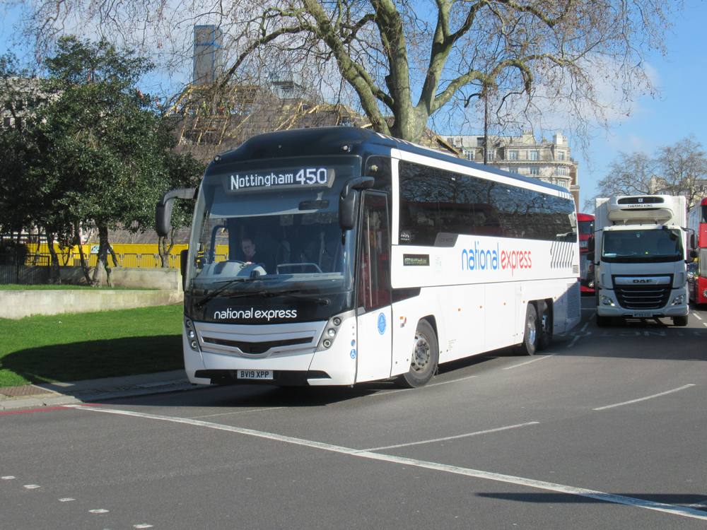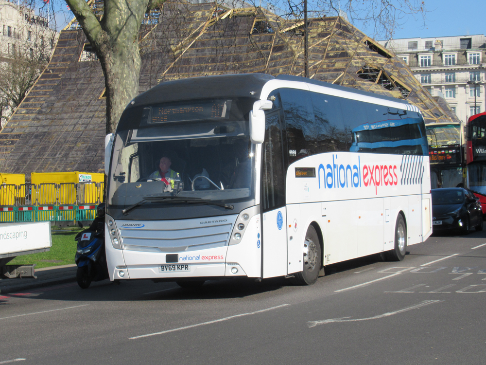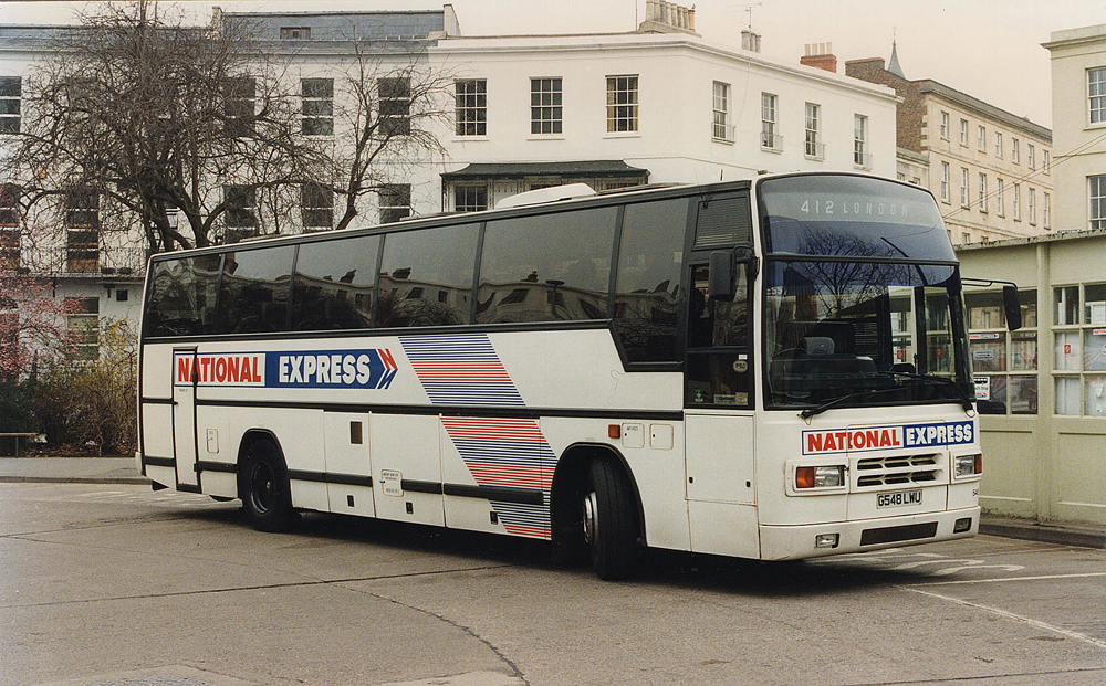 This time a C&D coach in National Express livery at Cheltenham, G548LWU on April