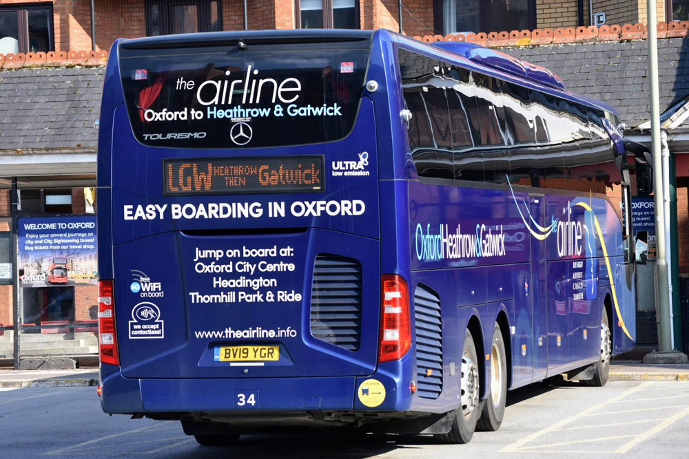 The coach provides connections between Heathrow and Gatwick airports to Oxford and High Wycombe.