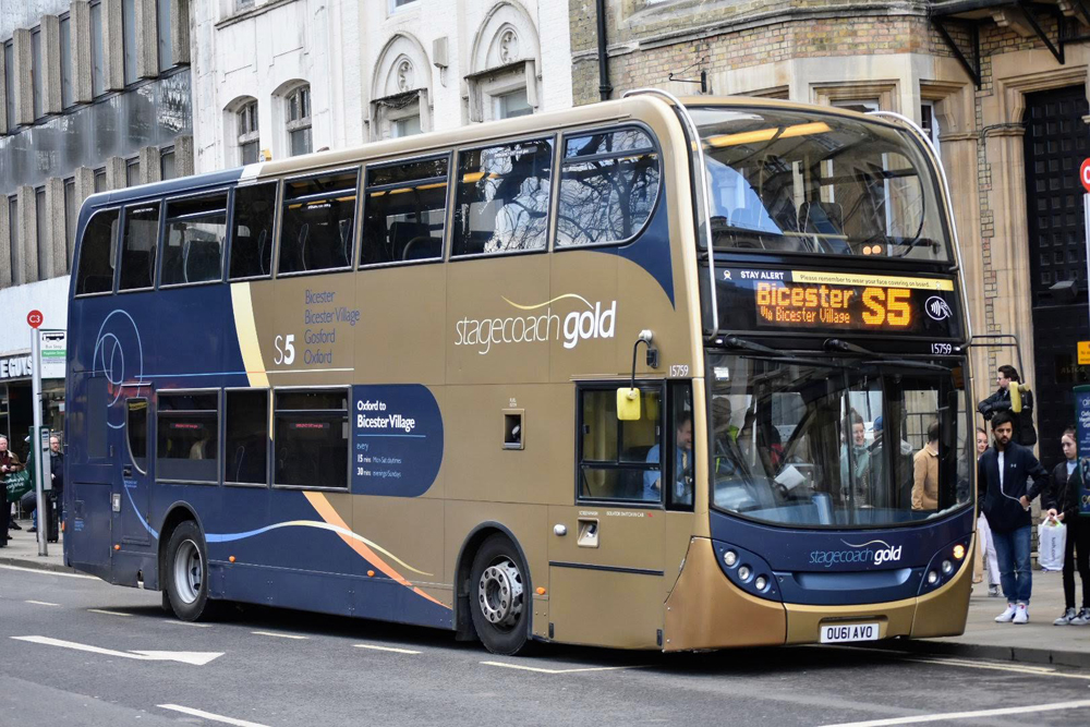 Gold 15759 manages to appear working the S5, its branded route, in Oxford on