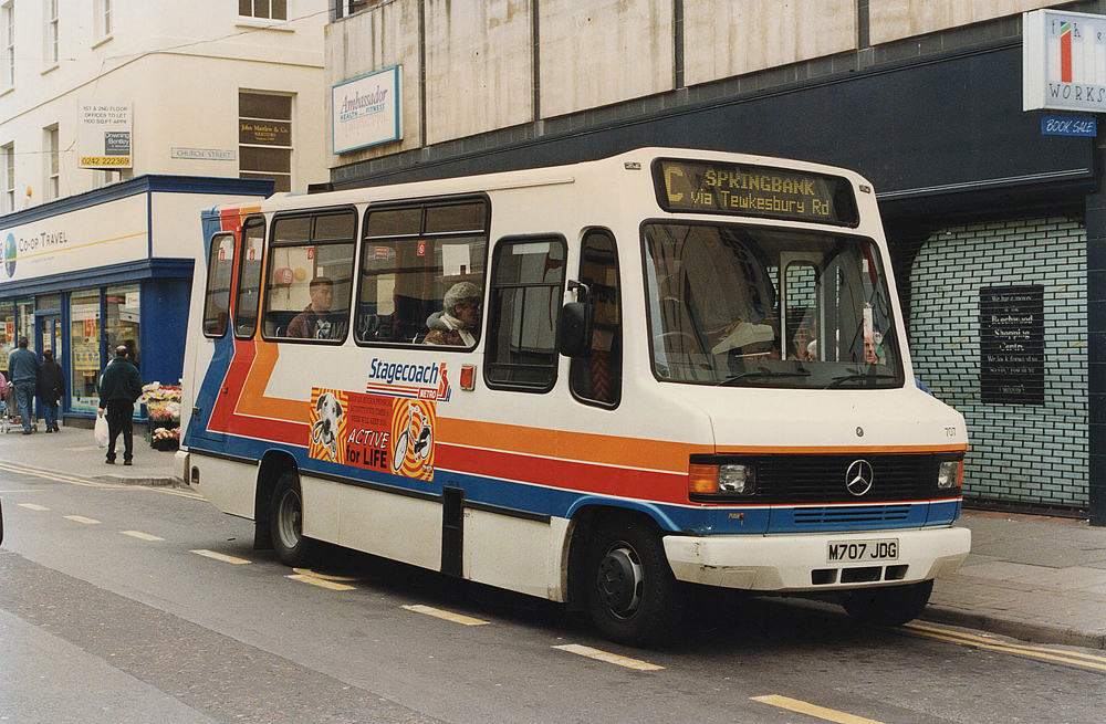 Mercedes 707 working route C in Cheltenham, again on April 6th 1996.