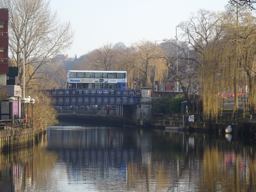 First Norwich Volvo fleet number 36209 (possibly) is city bound crossing the