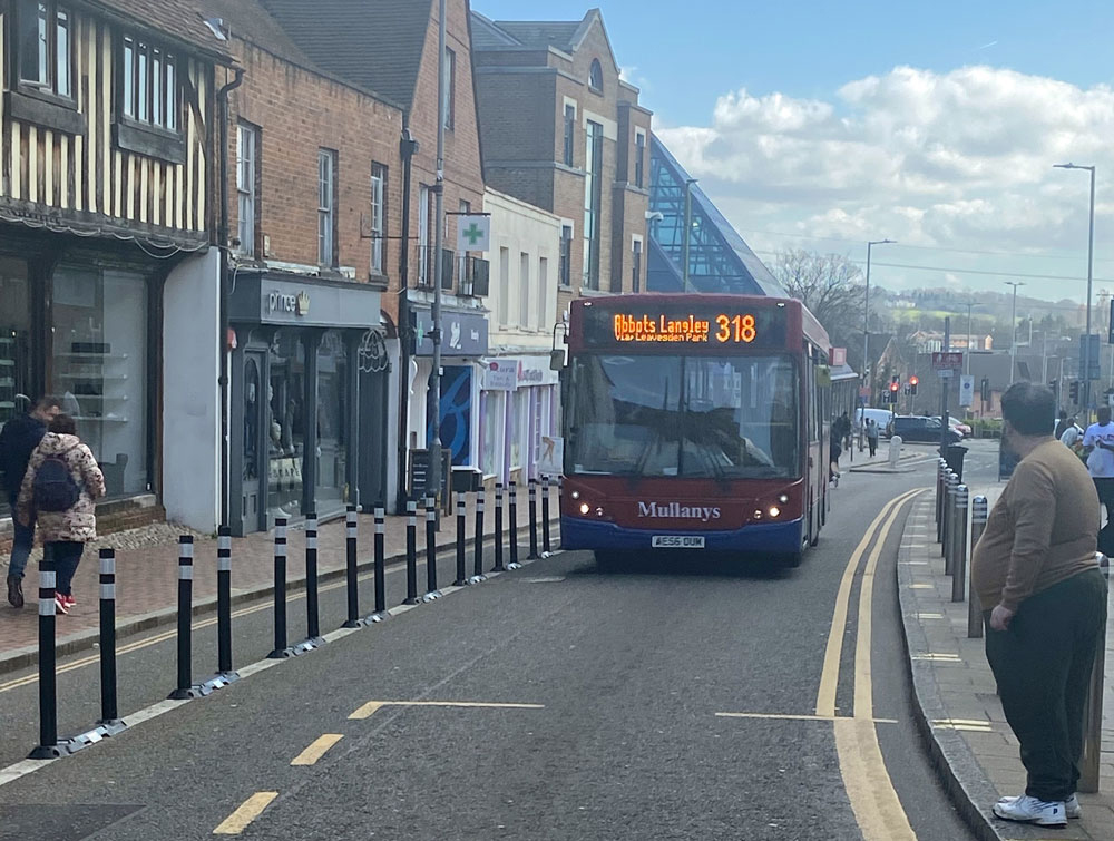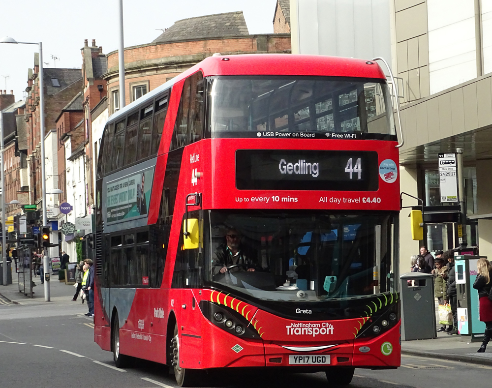 red arrow branding adorn Trent Barton's elite YX65ZHL. Below is an interesting