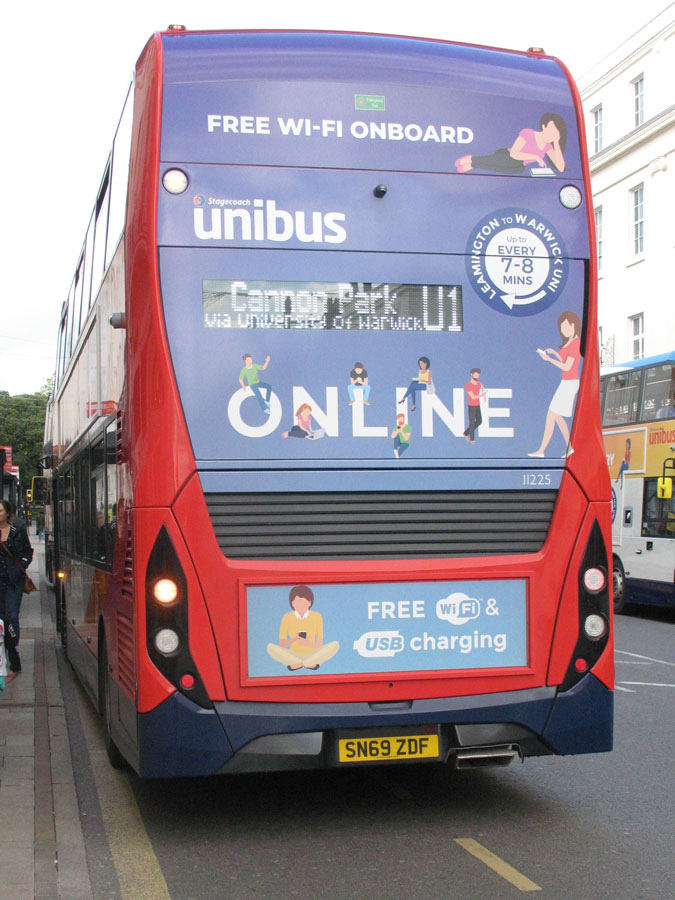 standard 6966, YX68UST, on route 11 to Coventry, via the University of Warwick.