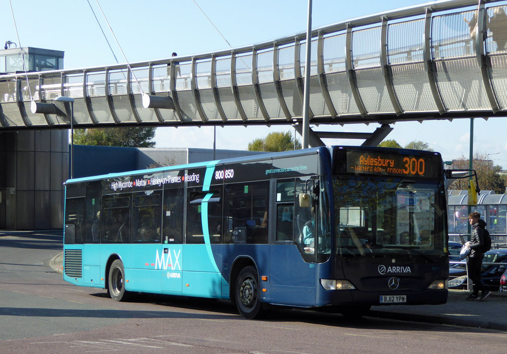 The other is 3011 arriving in Aylesbury on a lunchtime journey, branded for the 800/850! Do not often see so many unrepainted High Wycombe Citaros on this service now, let alone a Henley – Reading branded one - taken October 22nd