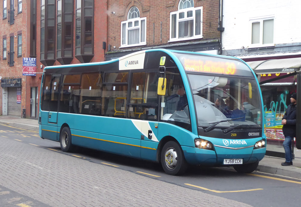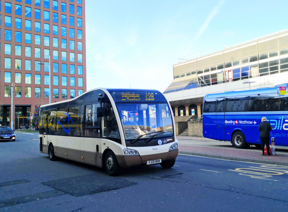 Courtney buses YJ13 HKW on route 128 to Wokingham.