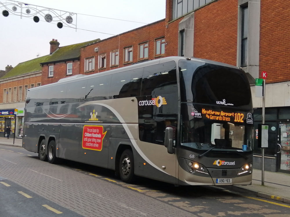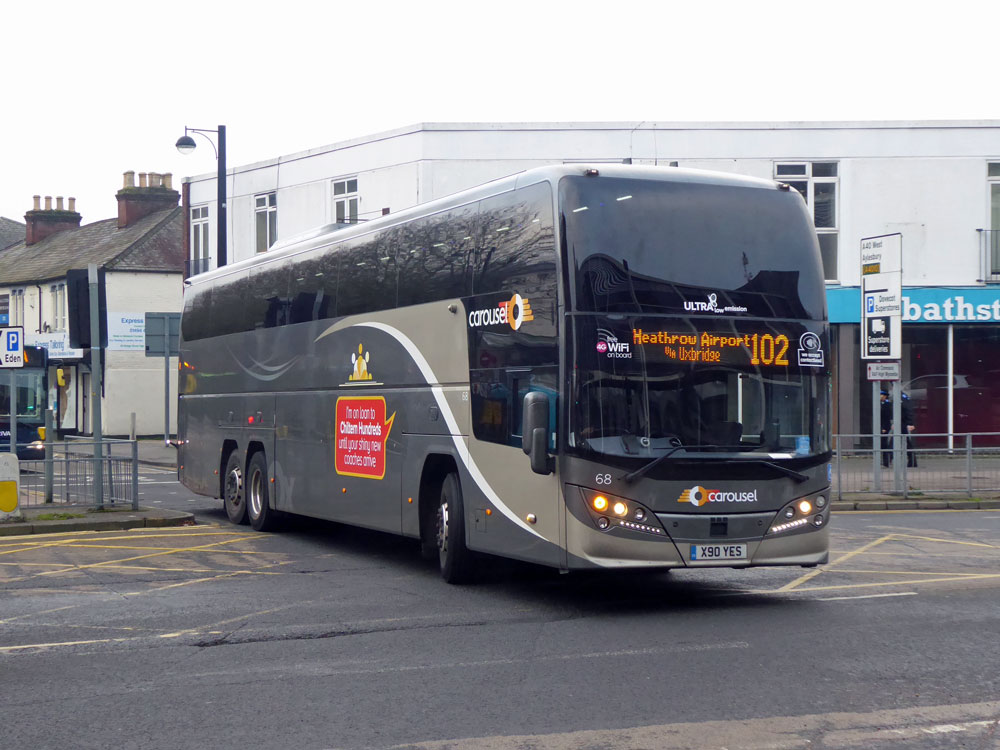 A surprise in recent weeks has been the use of currently used X90 elite I Interdeckers with branding removed and still appearing on the X90 to be then used by Carousel on their new 102 service to Heathrow started on December 29th.