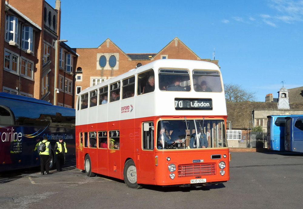 Saturday, January 4th saw the last day of operations for the X90 which was marked locally in Oxford by two coaches, one similar to the Bristol REs operation by Oxford South Midland and an ex COMS Oxford South Midland Bristol VR double deck coach purchased specifically for the London route. These two vehicles ran free trips between Gloucester Green Terminal in the city and Thornhill Park & Ride terminal which were greatly enjoyed by the enthusiasts taking advantage of the days' event.