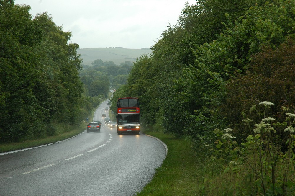 Another Spectra in the rain. Branded for the X7, 3160 is near Alderbury on the