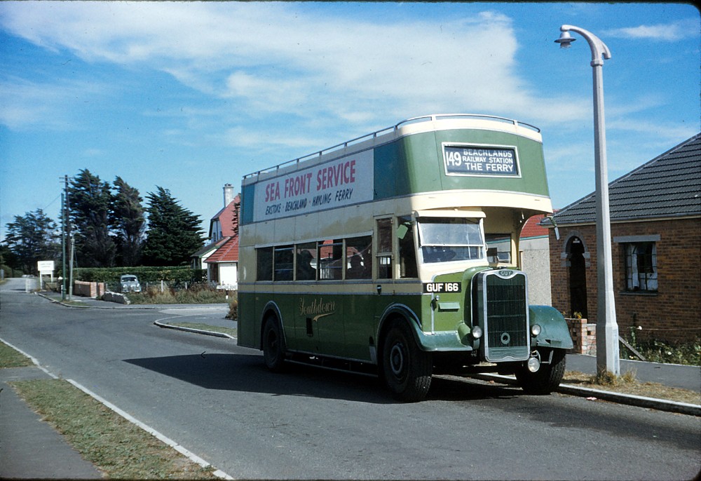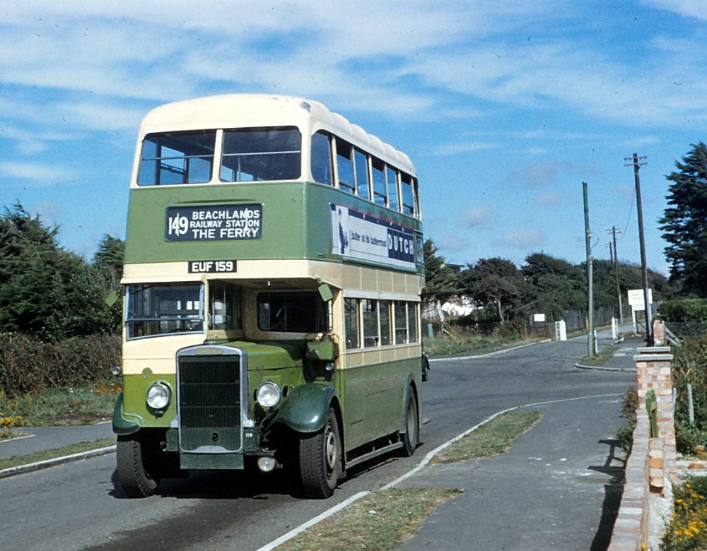 My holidays were a little too far west to take in much Southdown territory but I did grab a couple of shots. The first, 466, GUF 166 (image 144), was a Guy Arab II, new in 1945 with Park Royal body which was converted to open top as early as 1950. Its 5LW was replaced by a 6LW in 1957. Thirty three of the batch of one hundred utility Arabs were converted to open top and many served in to the 1960s. The second was 159, EUF 159 (image 147), a TD5 originally fitted with a Beadle body but re-bodied by East Lancs in 1950.